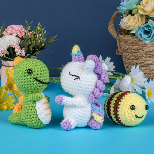 DIY Beginner Crochet Kits - Bee, Unicorn & Dinosaur