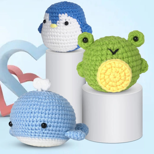 DIY Beginner Crochet Kits - Whale, Penguin & Frog