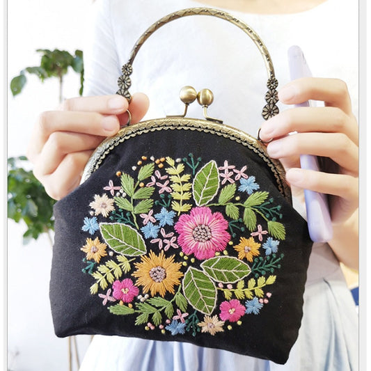 DIY Embroidery Purse Bag Kit - Black Flowers