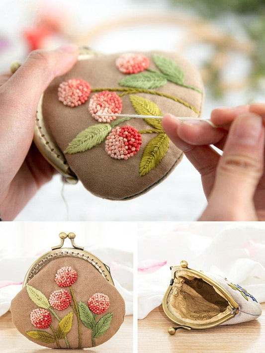 DIY Handmade Embroidered Coin Purse Kit - Vintage Floral