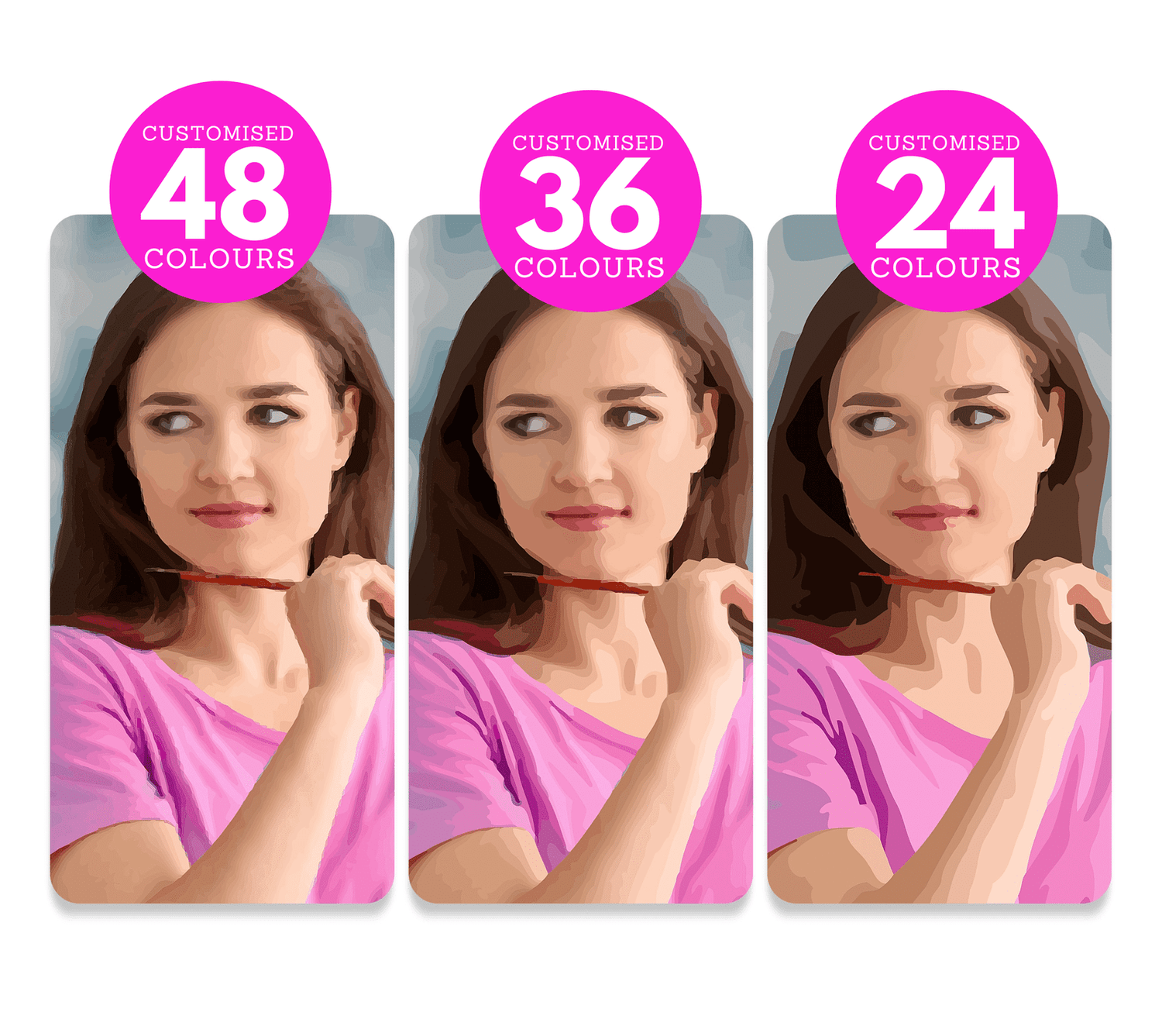 The more colours you have selected as an option, the more detailed and realistic your paint by numbers kit will be.
